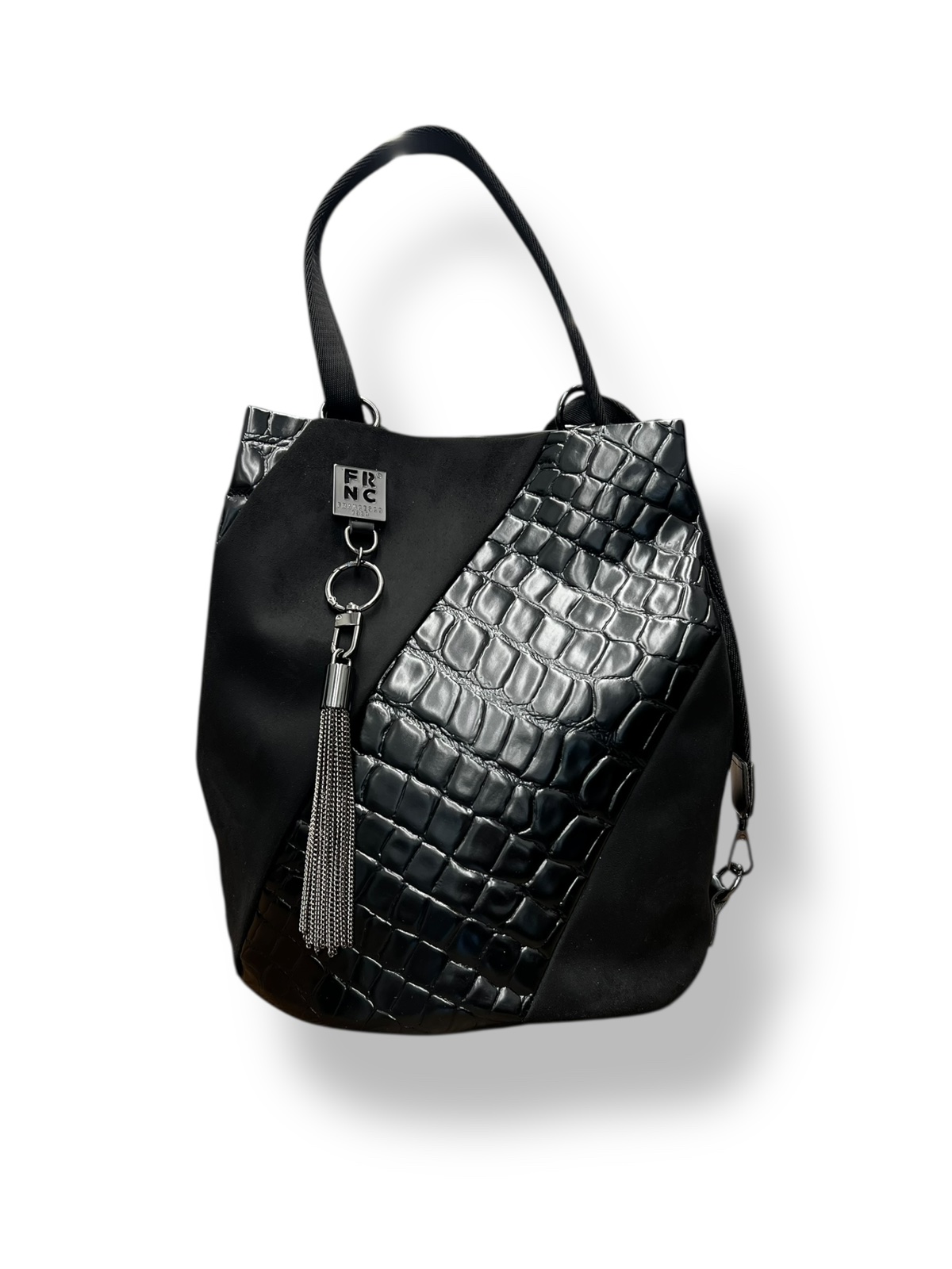 FRNC τσάντα ώμου\χειρός Nubuck Croco μαύρη – 6137BLK
