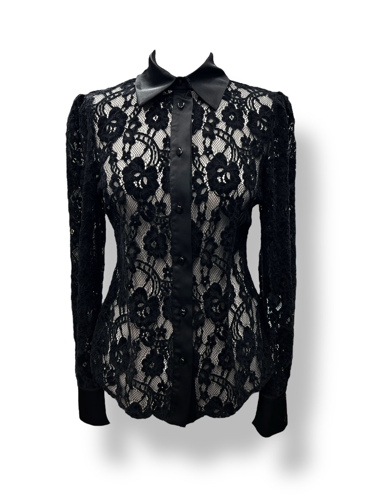 Πουκάμισο σατέν με τύπωμα κέντημα